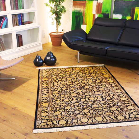 Ein echter, handgeknüpfter Ghom-Seide-Teppich aus dem Iran wird bei Kennern gern als Inbegriff orientalischer Knüpfkunst angesehen. Dieser Teppich besticht nicht nur durch seine außergewöhnliche Knotendichte von ca. 1.000.000 Knoten pro Quadratmeter und den Einsatz feinster Naturseide, sondern besonders durch sein extrem filigranes Muster. Ein echtes Kunstobjekt im Raum.